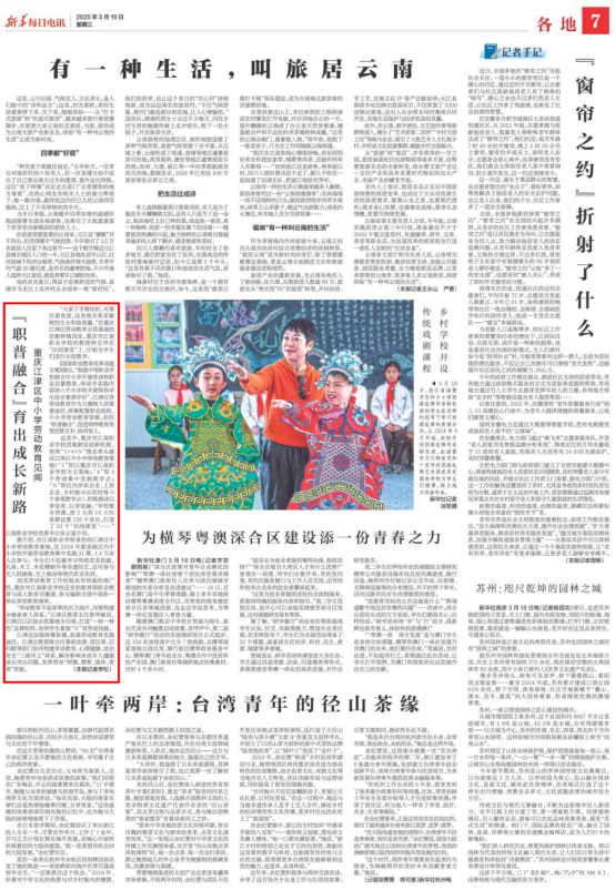 3月19日,新华每日电讯刊发了《“职普融合”育出成长新路 重庆江津区中小学劳动教育见闻》,报道了江津区江南职业学校承担的江津区中小学劳动教育基地,仅2024年就承接区内中小学校开展劳动教育集中实践31期,1.4万余人次参与。