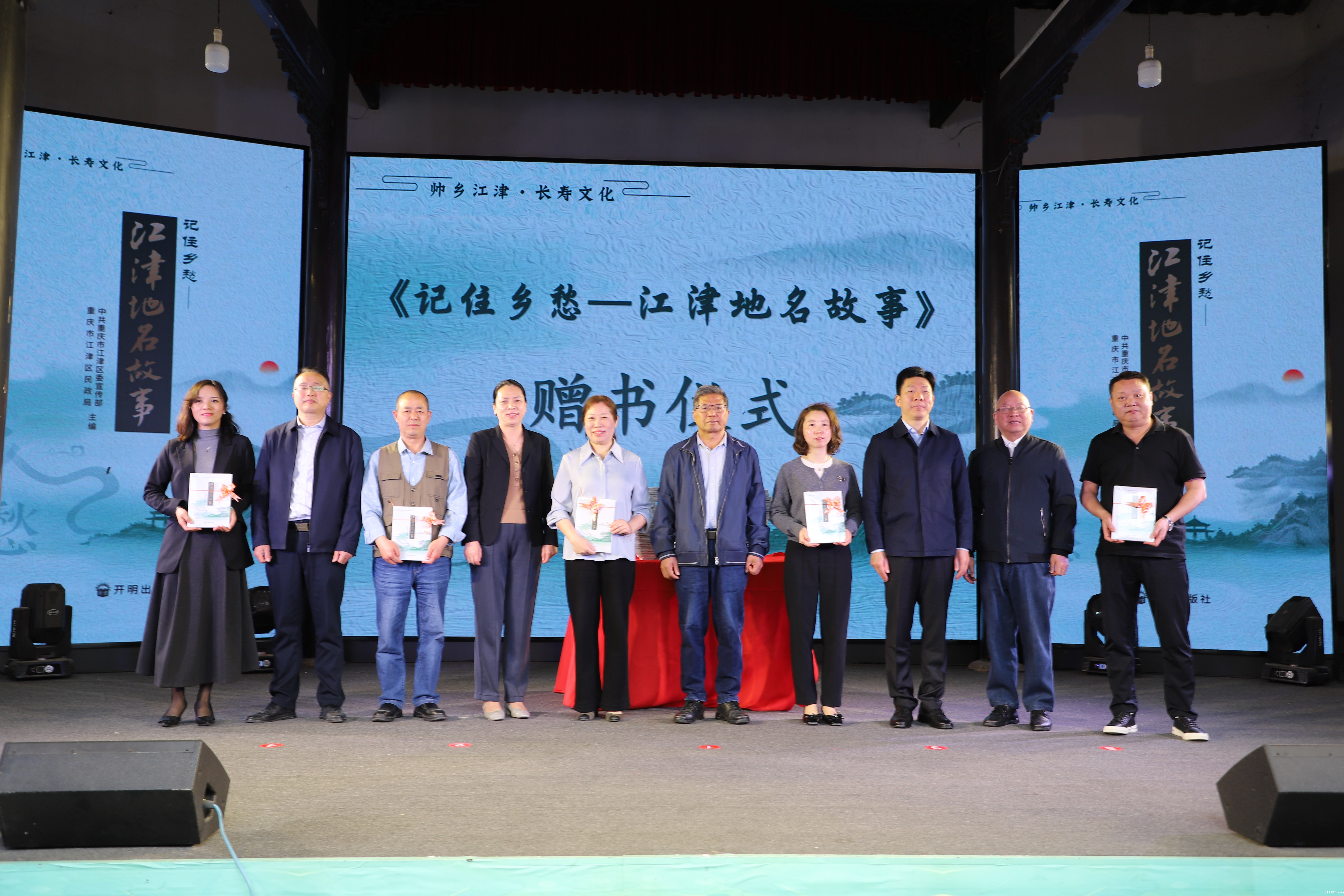 发布会上,还举行了揭幕和赠书仪式,现场领导、嘉宾向各镇街、作家、网红主播、社区代表赠书,希望这份承载着江津历史文化的礼物,走进更多人的生活。