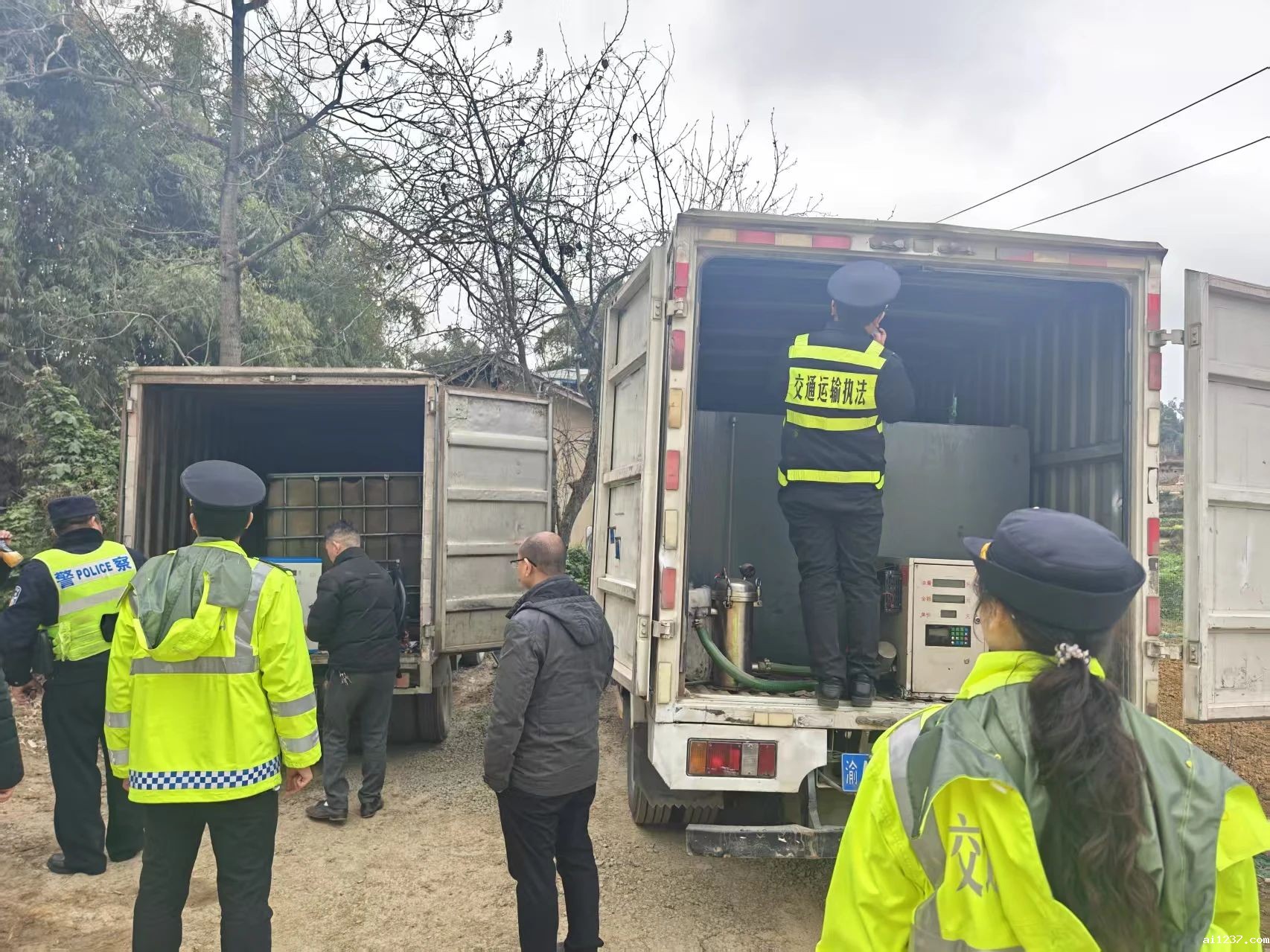 3月3日10时许,在开展成品油非法经营运输“黑窝点”“黑加油车”专项治理行动中,区交通执法支队三大队突击检查与流动巡查结合,成功查处一起未取得道路运输经营许可,擅自从事危险货物运输经营的违法行为。大队随即通知区公安局、区商务委、区应急局、油溪镇政府开展联合执法,现场查扣非法经营运输成品油的厢式货车2辆、流动加油设备2套、柴油约11.6吨。 根据前期精准摸排,交通执法三大队对目标点位实施突击检查,现场两辆轻型厢式货车以及一危化品车正在装卸油料。经执法人员现场确认,两辆轻型厢式货车私自加装储油罐及加油设备,且均未取得危险货物道路运输经营许可,驾驶员也未取得危险货物运输从业资格证。同时,执法人员发现储油现场周边存在极大安全隐患:一是储油设备存放于村内居民区周边;二是仓储地外杂乱堆放木柴、临靠树林等易燃物,一旦发生燃爆将严重威胁群众生命财产安全。执法人员依据《重庆市道路运输管理条例》第六十九条第一款之规定扣押涉案车辆,区商务委将查获柴油抽样送检,并追溯油料源头。 此次行动对非法经营运输“黑油”行为形成有力震慑。下一步,交通执法部门持续开展常态化巡查,重点排查城乡结合部、废弃厂房等隐蔽区域;加强源头治理,严查非法运输、储存、销售链条;强化宣传引导,通过典型案例曝光提高群众安全意识,畅通举报渠道,切实保障人民群众生命财产安全。