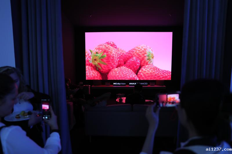 在德国柏林国际消费电子展极米科技展区,参观者拍摄新款投影产品(2024年9月6日摄)。