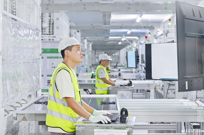 工人在位于浙江省乐清市的正泰集团8GW高效光伏组件生产基地工作(资料照片)。