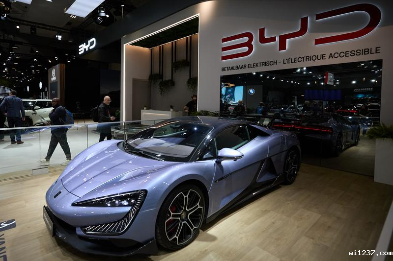 这是在比利时布鲁塞尔举办的2025布鲁塞尔车展上拍摄的比亚迪汽车(2025年1月10日摄)。