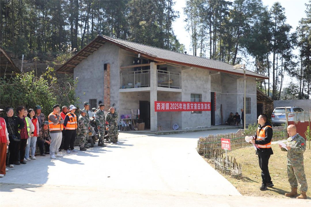 地质灾害应对环节聚焦山体滑坡险情处置。社区监测员发现山体滑坡险情后,拉响警报并上报。镇政府启动《西湖镇地质灾害应急预案》,成立现场指挥部。疏散安置组挨家挨户引导群众撤离,对行动不便人员实施担架转运;医疗救护组在临时医疗点做好救治准备,演示止血包扎、心肺复苏与海姆立克等急救方法;交通管控组设置警示标志,维持秩序。在各方努力下,群众安全撤离,并对受灾群众进行妥善安置和救助。